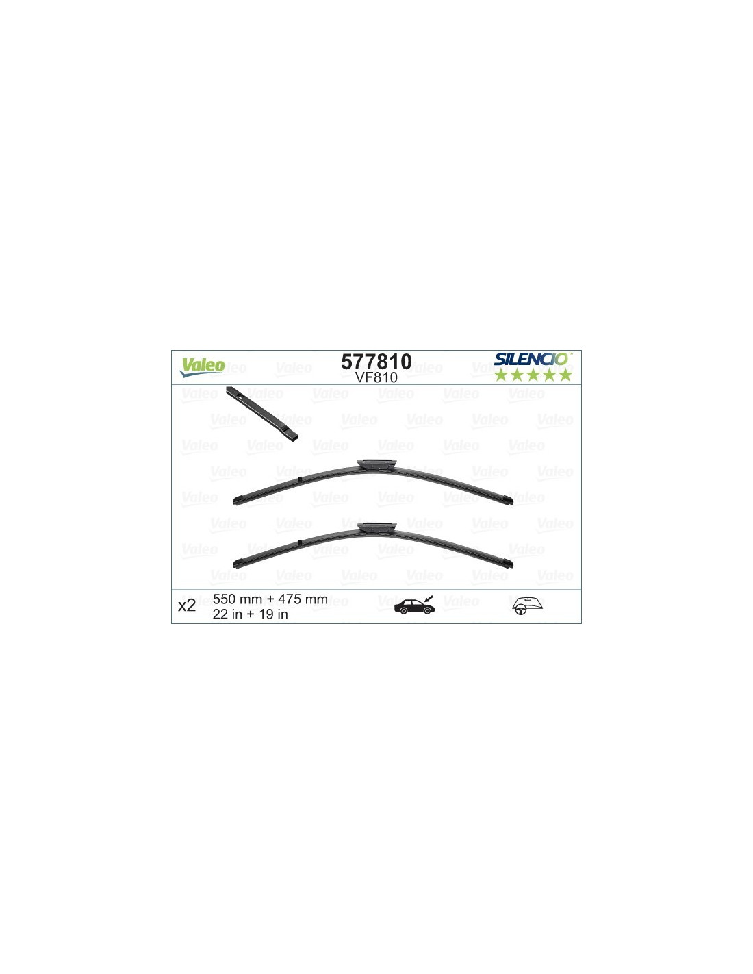 Valytuvų komplektas Valeo Silencio VF810. Kodas: VF810, Ilgis: 550/475.