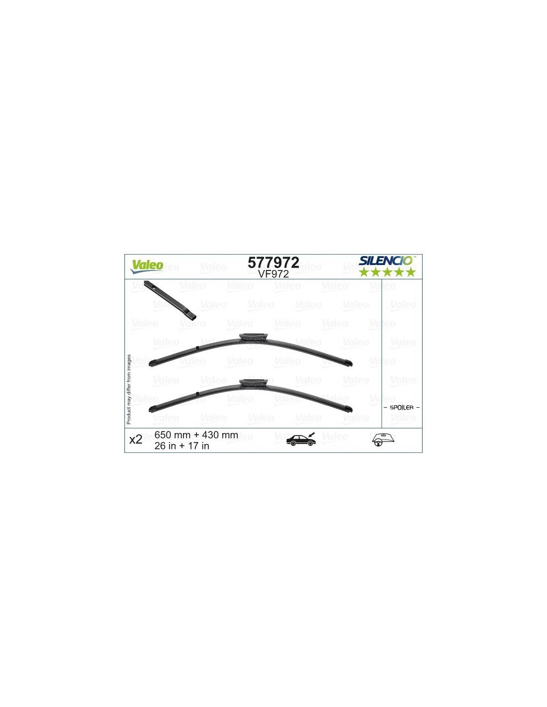 Valytuvų komplektas Valeo Silencio VF972. Kodas: VF972, Ilgis: 650/430.