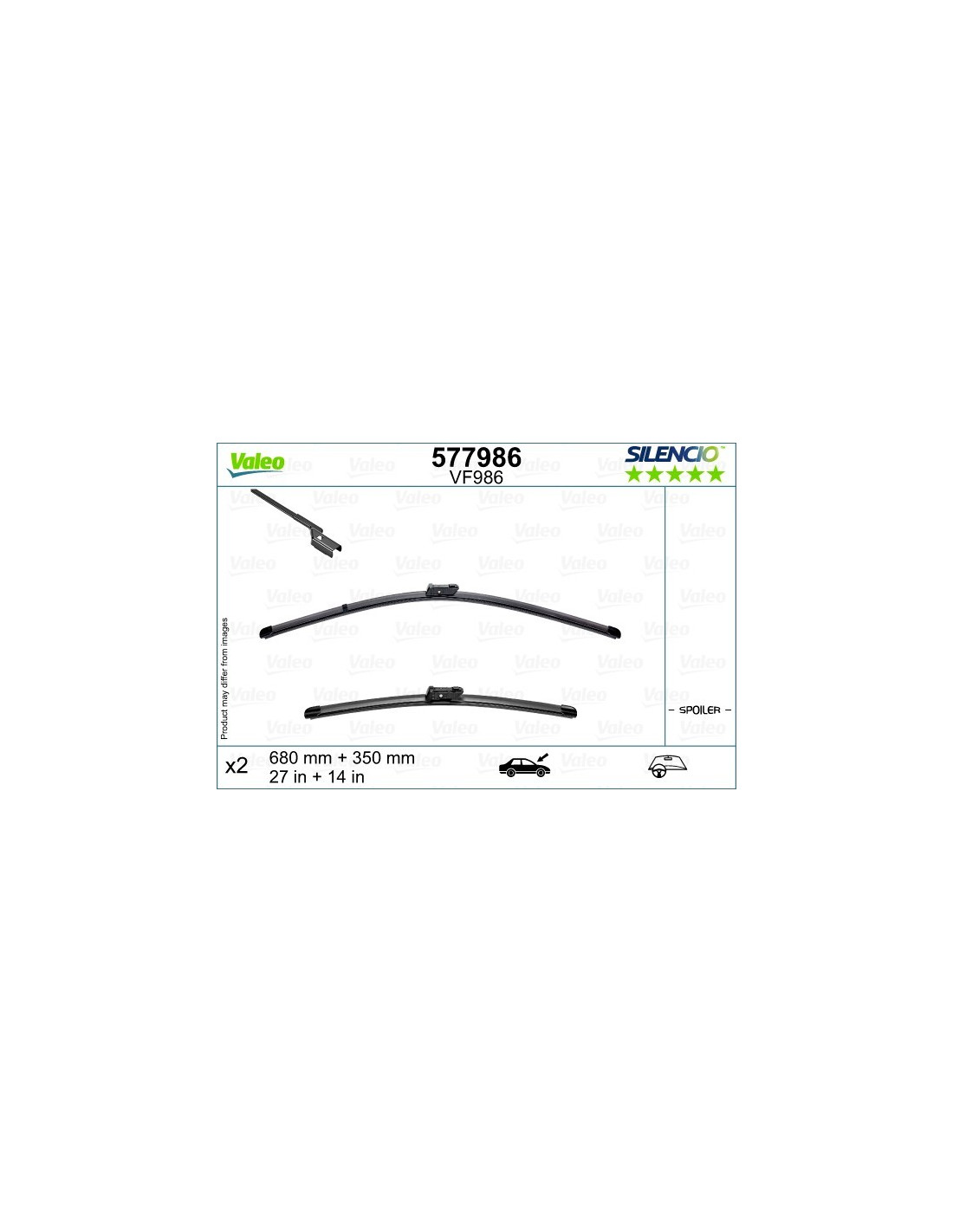 Valytuvų komplektas Valeo Silencio VF986. Kodas: VF986, Ilgis: 680/350.